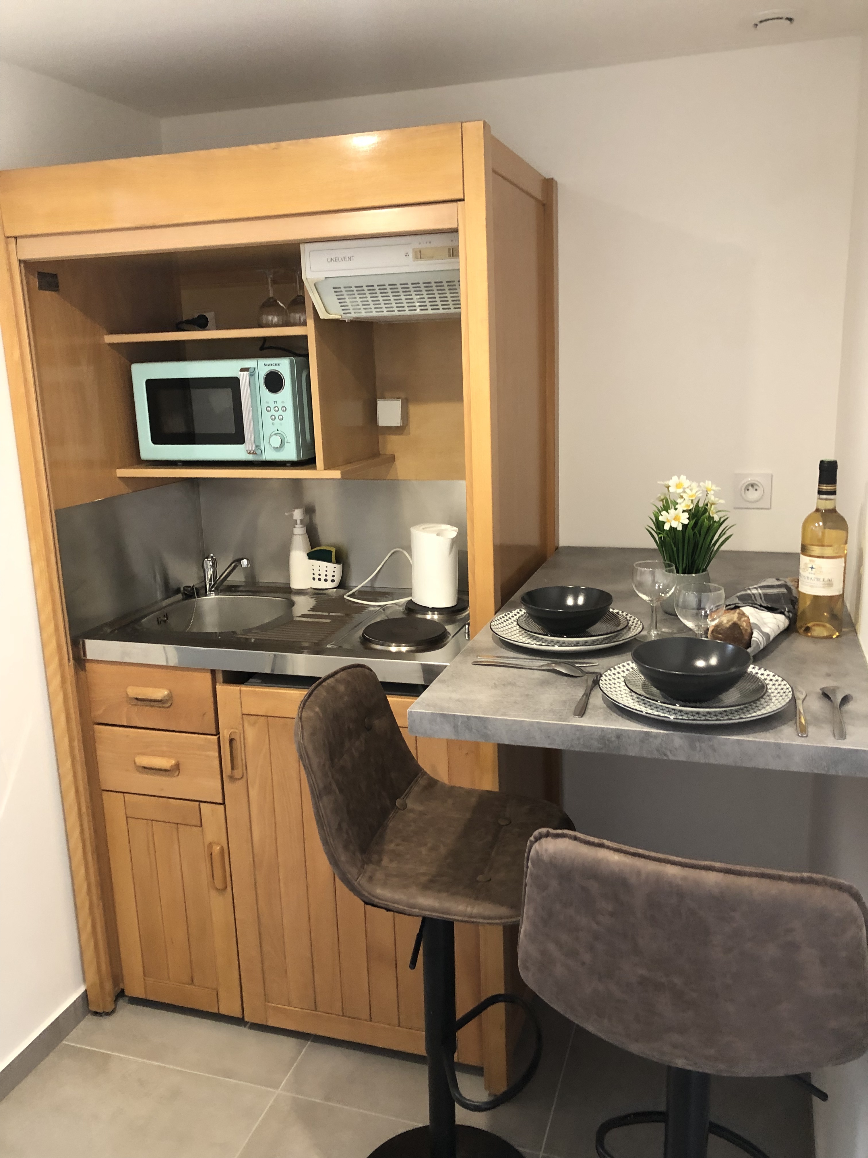 Ils disposent d’un écran plat, d’une salle de bain privative et d’une kitchenette. Trois studios sont pourvus d’un balcon et tous sont dotés de la climatisation.